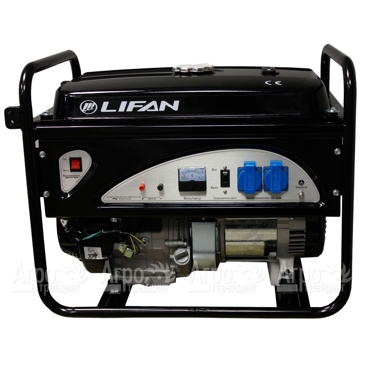 Бензиновый генератор Lifan 4 GF-3 4 кВт укомплектован надёжным двигателем внутреннего сгорания, изготовленным по лицензии компании Хонда. Мотор потребляет совсем немного топлива, при этом обеспечивая высокую выработку тока генератором. Запускается двигатель ручным стартером. На приборной панели установлен вольтметр для контроля выходного напряжения прибора. Все силовые линии генератора защищены от короткого замыкания и перегрузки. Мощная рама умеет устойчивую платформу и специальные ручки для переноски агрегата. Демпферные подушки уменьшают уровень вибрации машины во время работы, а широкая горловина топливного бака удобна для заправки двигателя бензином.