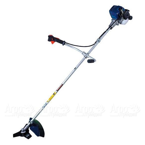 Бензокоса имеет прямую штангу и угловой редуктор. Для стрижки молодой травы используется леска толщиной до 4.0 мм. Для борьбы с сухостоем, камышом и другими крупными, более жесткими культурами применяется металлический трехлопастной нож.