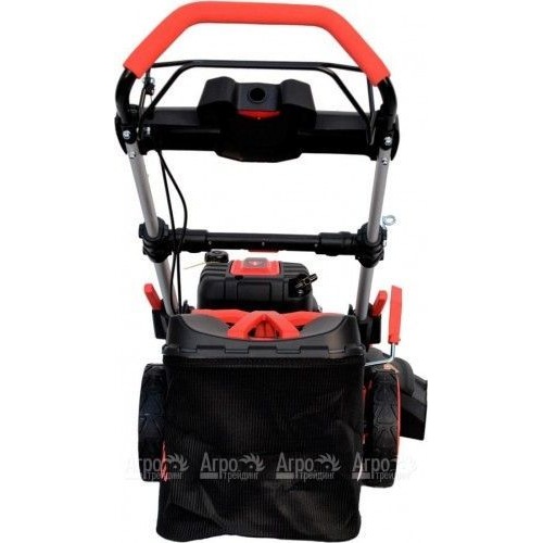 В основе газонокосилки лежит современный бензиновый двигатель. Мотор легко запускается ручным стартером, потребляет немного топлива, не перегревается. В качестве режущего инструмента используется стальная дека с роторным ножом. Высота кошения очень просто регулируется центральным рычагом. Скошенная трава собирается в травосборник. Дополнительно имеется функция бокового и заднего выброса травы, мульчирования.