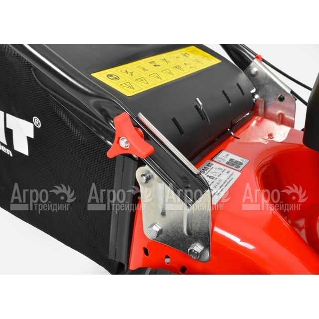 Рукоятка регулируемая по высоте и со складной конструкцией, что обеспечивает удобство в работе, а также при хранении или транспортировке. При кошении скошенная растительность забрасывается в травосборник или остается позади, в зависимости  от того, какой режим предпочитает пользователь. Стальная дека устойчива к деформации и воздействию коррозии. Колесные диски оснащены шарикоподшипниками, что делает ход газонокосилки бензиновой Hecht 540 BS более плавным и равномерным. Объем травосборника составляет 40 л.
