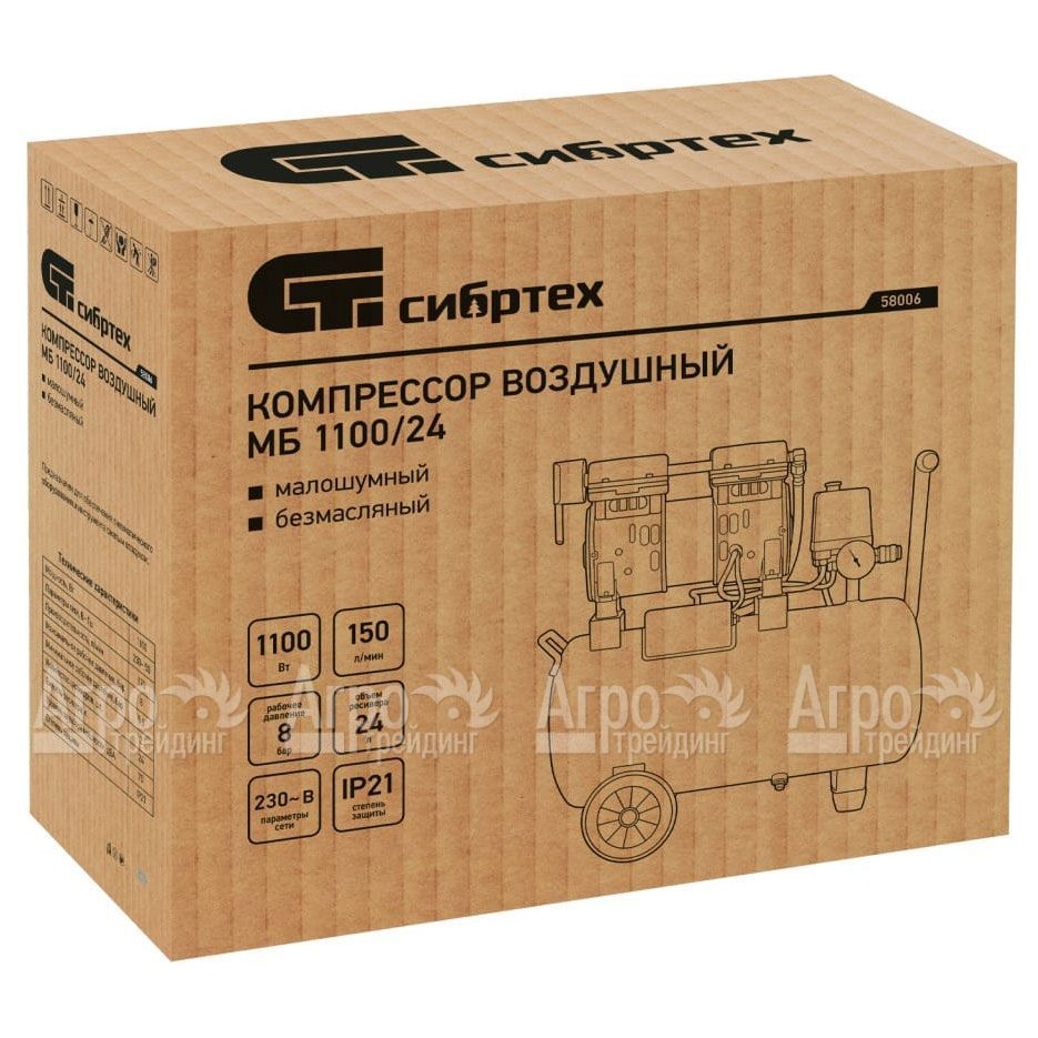 Компрессор безмасляный малошумный Сибртех МБ 1100/24