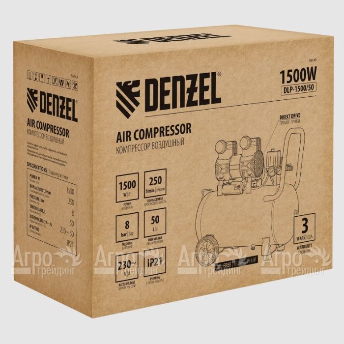 Компрессор поршневой безмасляный Denzel DLP-1500/50