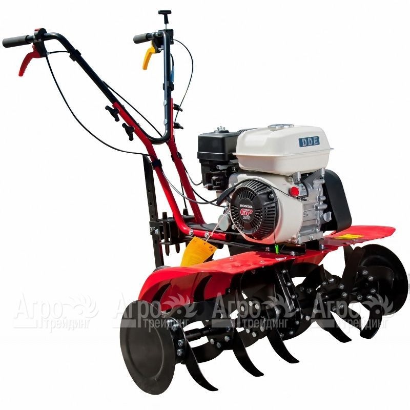 Высокопроизводительный и маневренный культиватор DDE V 500 II - 65R (-mh) Мустанг-1МH с выносливым и мощным двигателем Honda подходит для эксплуатации на участках с любой почвой. Двигатель легко запускается в рабочий режим ручным стартером, имеет защиту от низкого уровня масла. Коробка передач имеет переднюю и заднюю скорость. Задняя передача удобна для работы на стесненных участках и при выезде из рыхлого грунта. Цепной редуктор обеспечивает вращение фрезы и колес. Органы управления расположены на рукоятках в свободной доступности руки.
