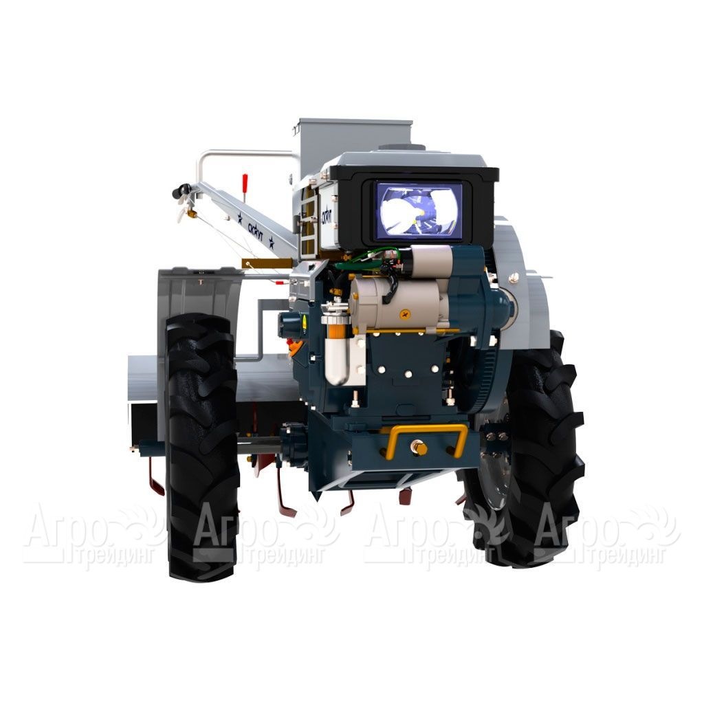 Характеристики товара: Мотоблок Garden Scout (Скаут) GS 81 DE, почвофрезаПодробное описание товараУниверсальный мотоблок Garden Scout (Скаут) GS 81 DE - многофункциональная техника, разработанная в помощь владельцам больших земельных участков, фермерам, которая способна агрегироваться с большим ассортиментом навесных орудий, что дает возможность выполнять всевозможные работы на полях, перевозить грузы, очищать территорию от снега. Мотоблок эффективен для работы на больших площадях, работает от дизельного четырехтактного двигателя, отличается надежностью, маневренностью, имеет три ВОМ -шлицевой, ременной, шестеренчатый. В конструкции предусмотрена фара, что позволяет осуществлять работы при в темное время суток. В заводскую комплектацию входит почвофреза. Двигатель надежен и стабилен в работе, адаптирован для работы в зимнее время, может запускаться как ручным, так и электрическим стартером, и имеет систему водяного охлаждения, которая защищает его от перегрева. Большой выбор скоростей обеспечивает работу с разным навесным оборудованием. Возможность разблокировки дифференциала для каждого колеса обеспечивает маневренность тяжелого мотоблока Garden Scout (Скаут) GS 81 DE, оператор может непосредственно на месте разворачивать тяжелый мотоблок. Крупные колеса с протектором обеспечивают высокое тяговое усилие. Наличие в конструкции мотоблока фары позволяет выполнять работы в вечернее время.