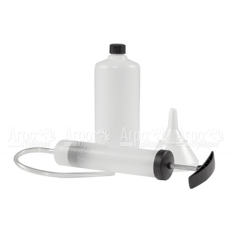 Для всех газонокосилок, имеющих бензиновый двигатель, производители Al-ko разработали специальный комплект для обслуживания двигателей. В него входят: отсасывающий насос, заливная воронка и ёмкость для слива масла.