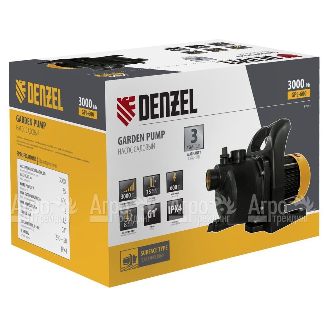 Поверхностный самовсасывающий насос Denzel GPL600