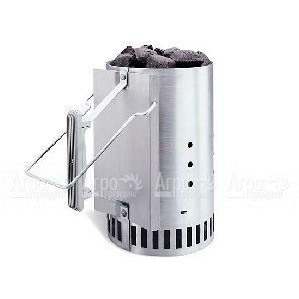 Изготовлена из алитированной стали. Увеличенный размер позволяет поместить в нее необходимое количество брикетов для косвенного или прямого приготовления. Для безопасности предусмотрена ручка Stay-Cool из термопласта и откидная проволочная ручка. Стартер быстрее разжигает древесные угли за счет решетки в форме конуса. На нижнюю решетку гриля кладется любое средство для розжига, сверху ставится стартер Weber, в который засыпают брикеты древесного угля. Для удобного и безопасного пересыпания углей предусмотрены одна неподвижная ручка из термопласта и откидная проволочная ручка.